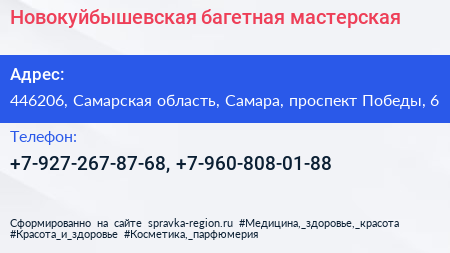 Новокуйбышевская багетная мастерская по адресу 446206, Самарская область, Самара, проспект Победы, 6 в дальнейшем Организация, размещена в следующих категориях: