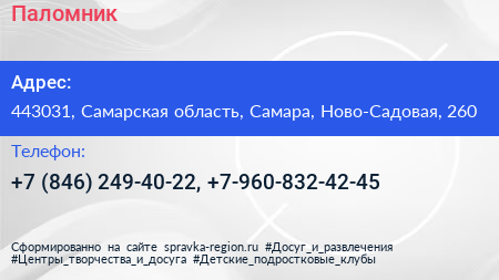 Паломник по адресу 443031, Самарская область, Самара, Ново-Садовая, 260 в дальнейшем Организация, размещена в следующих категориях: