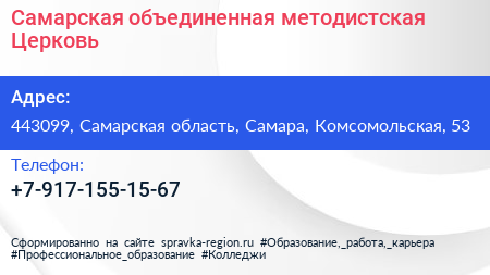 Самарская объединенная методистская Церковь по адресу 443099, Самарская область, Самара, Комсомольская, 53 в дальнейшем Организация, размещена в следующих категориях: