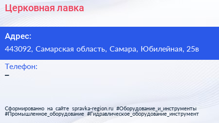 Церковная лавка по адресу 443092, Самарская область, Самара, Юбилейная, 25в в дальнейшем Организация, размещена в следующих категориях: