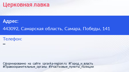 Церковная лавка по адресу 443092, Самарская область, Самара, Победы, 141 в дальнейшем Организация, размещена в следующих категориях: