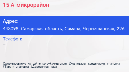 15 А микрорайон по адресу 443098, Самарская область, Самара, Черемшанская, 226 в дальнейшем Организация, размещена в следующих категориях: