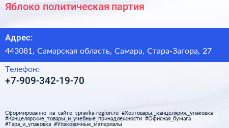 Яблоко, политическая партия по адресу 443081, Самарская область, Самара, Стара-Загора, 27 в дальнейшем Организация, размещена в следующих категориях: