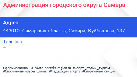 Администрация городского округа Самара по адресу 443010, Самарская область, Самара, Куйбышева, 137 в дальнейшем Организация, размещена в следующих категориях:
