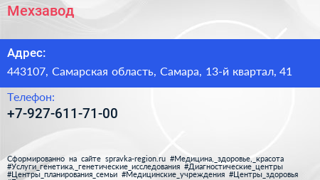 Мехзавод по адресу 443107, Самарская область, Самара, 13-й квартал, 41 в дальнейшем Организация, размещена в следующих категориях: