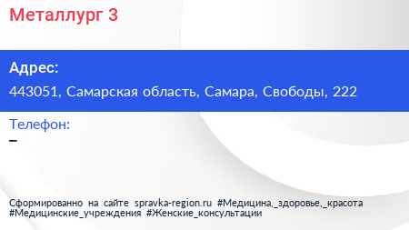 Металлург-3 по адресу 443051, Самарская область, Самара, Свободы, 222 в дальнейшем Организация, размещена в следующих категориях: