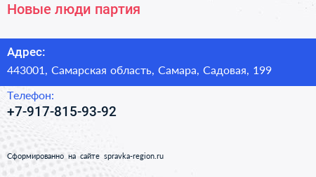Новые люди, партия по адресу 443001, Самарская область, Самара, Садовая, 199 в дальнейшем Организация, размещена в следующих категориях: