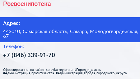 Росвоенипотека по адресу 443010, Самарская область, Самара, Молодогвардейская, 67 в дальнейшем Организация, размещена в следующих категориях: