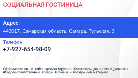 СОЦИАЛЬНАЯ ГОСТИНИЦА по адресу 443017, Самарская область, Самара, Тульская, 3 в дальнейшем Организация, размещена в следующих категориях: