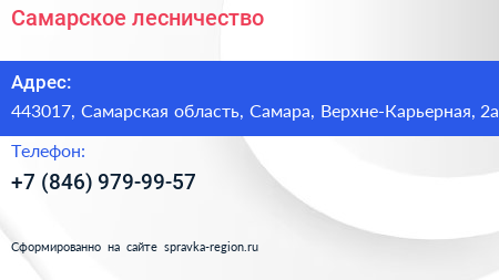 Самарское лесничество по адресу 443017, Самарская область, Самара, Верхне-Карьерная, 2а в дальнейшем Организация, размещена в следующих категориях: