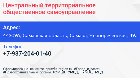 Центральный, территориальное общественное самоуправление по адресу 443096, Самарская область, Самара, Чернореченская, 49а в дальнейшем Организация, размещена в следующих категориях: