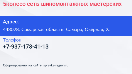 5колесо, сеть шиномонтажных мастерских по адресу 443028, Самарская область, Самара, Озёрная, 2а в дальнейшем Организация, размещена в следующих категориях: