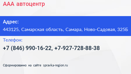 ААА, автоцентр по адресу 443125, Самарская область, Самара, Ново-Садовая, 325Б в дальнейшем Организация, размещена в следующих категориях: