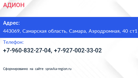 АДИОН по адресу 443069, Самарская область, Самара, Аэродромная, 40 ст1 в дальнейшем Организация, размещена в следующих категориях: