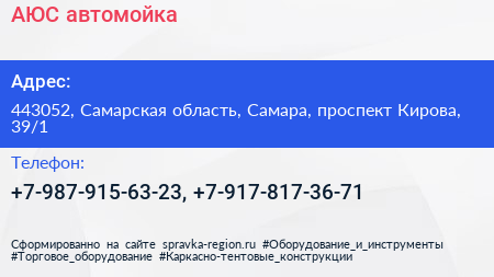 АЮС, автомойка по адресу 443052, Самарская область, Самара, проспект Кирова, 39/1 в дальнейшем Организация, размещена в следующих категориях: