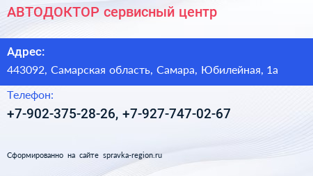 АВТОДОКТОР, сервисный центр по адресу 443092, Самарская область, Самара, Юбилейная, 1а в дальнейшем Организация, размещена в следующих категориях: