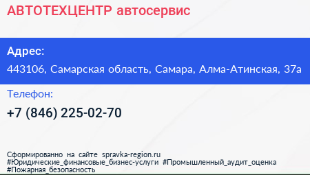 АВТОТЕХЦЕНТР, автосервис по адресу 443106, Самарская область, Самара, Алма-Атинская, 37а в дальнейшем Организация, размещена в следующих категориях: