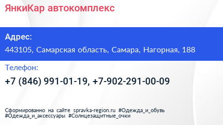 ЯнкиКар, автокомплекс по адресу 443105, Самарская область, Самара, Нагорная, 188 в дальнейшем Организация, размещена в следующих категориях: