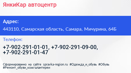 ЯнкиКар, автоцентр по адресу 443110, Самарская область, Самара, Мичурина, 64Б в дальнейшем Организация, размещена в следующих категориях: