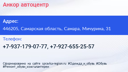 Анкор, автоцентр по адресу 446205, Самарская область, Самара, Мичурина, 31 в дальнейшем Организация, размещена в следующих категориях:
