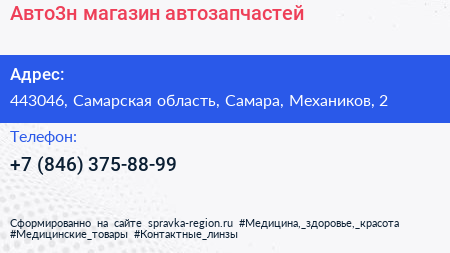 Авто3н, магазин автозапчастей по адресу 443046, Самарская область, Самара, Механиков, 2 в дальнейшем Организация, размещена в следующих категориях: