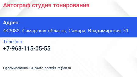 Автограф, студия тонирования по адресу 443082, Самарская область, Самара, Владимирская, 51 в дальнейшем Организация, размещена в следующих категориях: