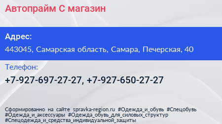 Автопрайм-С, магазин по адресу 443045, Самарская область, Самара, Печерская, 40 в дальнейшем Организация, размещена в следующих категориях: