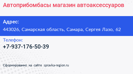 Автоприбомбасы, магазин автоаксессуаров по адресу 443026, Самарская область, Самара, Сергея Лазо, 62 в дальнейшем Организация, размещена в следующих категориях: