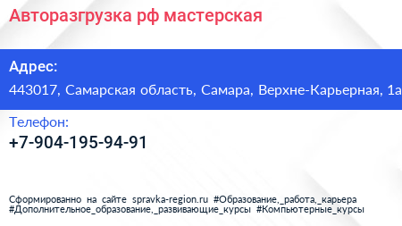 Авторазгрузка.рф, мастерская по адресу 443017, Самарская область, Самара, Верхне-Карьерная, 1а в дальнейшем Организация, размещена в следующих категориях: