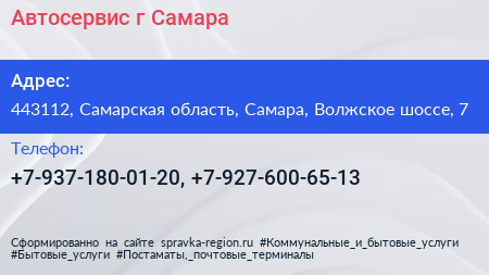 Автосервис, г. Самара по адресу 443112, Самарская область, Самара, Волжское шоссе, 7 в дальнейшем Организация, размещена в следующих категориях: