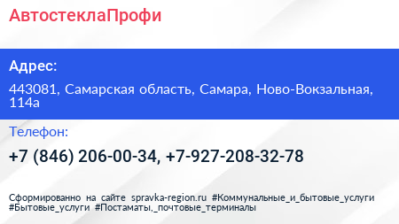 АвтостеклаПрофи по адресу 443081, Самарская область, Самара, Ново-Вокзальная, 114а в дальнейшем Организация, размещена в следующих категориях: