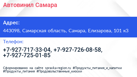 Автовинил Самара по адресу 443098, Самарская область, Самара, Елизарова, 101 к3 в дальнейшем Организация, размещена в следующих категориях: