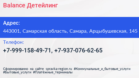 Balance Детейлинг по адресу 443001, Самарская область, Самара, Арцыбушевская, 145 в дальнейшем Организация, размещена в следующих категориях: