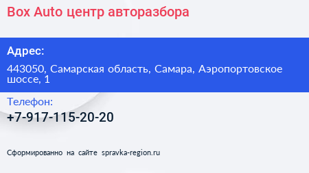 Box-Auto, центр авторазбора по адресу 443050, Самарская область, Самара, Аэропортовское шоссе, 1 в дальнейшем Организация, размещена в следующих категориях: