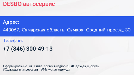 DESBO, автосервис по адресу 443067, Самарская область, Самара, Средний проезд, 30 в дальнейшем Организация, размещена в следующих категориях:
