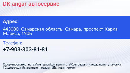 DK angar, автосервис по адресу 443080, Самарская область, Самара, проспект Карла Маркса, 190Б в дальнейшем Организация, размещена в следующих категориях: