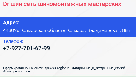 Dr.шин, сеть шиномонтажных мастерских по адресу 443096, Самарская область, Самара, Владимирская, 88Б в дальнейшем Организация, размещена в следующих категориях: