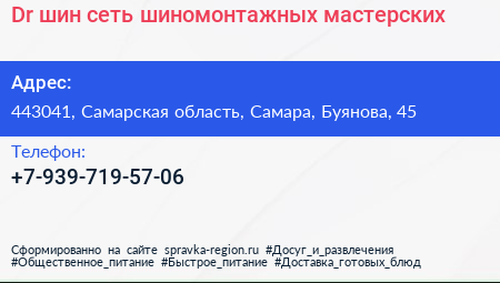 Dr.шин, сеть шиномонтажных мастерских по адресу 443041, Самарская область, Самара, Буянова, 45 в дальнейшем Организация, размещена в следующих категориях: