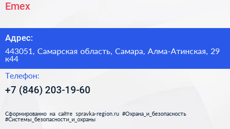 Emex по адресу 443051, Самарская область, Самара, Алма-Атинская, 29 к44 в дальнейшем Организация, размещена в следующих категориях: