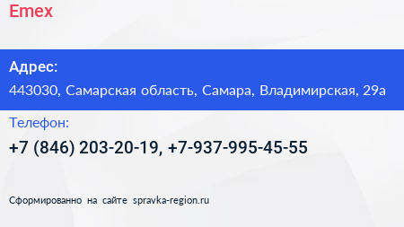 Emex по адресу 443030, Самарская область, Самара, Владимирская, 29а в дальнейшем Организация, размещена в следующих категориях: