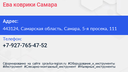 Ева коврики Самара по адресу 443124, Самарская область, Самара, 5-я просека, 111 в дальнейшем Организация, размещена в следующих категориях: