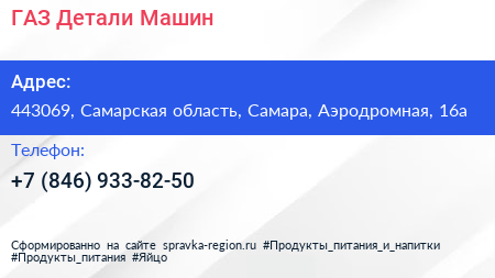 ГАЗ Детали Машин по адресу 443069, Самарская область, Самара, Аэродромная, 16а в дальнейшем Организация, размещена в следующих категориях: