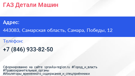 ГАЗ Детали Машин по адресу 443083, Самарская область, Самара, Победы, 12 в дальнейшем Организация, размещена в следующих категориях: