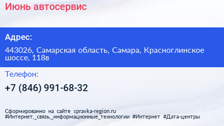 Июнь, автосервис по адресу 443026, Самарская область, Самара, Красноглинское шоссе, 118в в дальнейшем Организация, размещена в следующих категориях: