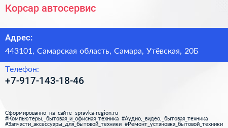 Корсар, автосервис по адресу 443101, Самарская область, Самара, Утёвская, 20Б в дальнейшем Организация, размещена в следующих категориях: