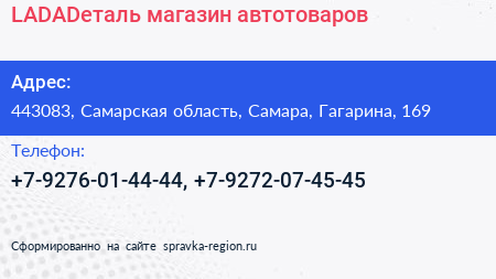 LADADеталь, магазин автотоваров по адресу 443083, Самарская область, Самара, Гагарина, 169 в дальнейшем Организация, размещена в следующих категориях: