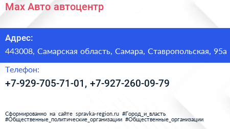 Max Авто, автоцентр по адресу 443008, Самарская область, Самара, Ставропольская, 95а в дальнейшем Организация, размещена в следующих категориях: