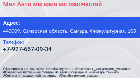 Мел-Авто, магазин автозапчастей по адресу 443009, Самарская область, Самара, Физкультурная, 105 в дальнейшем Организация, размещена в следующих категориях: