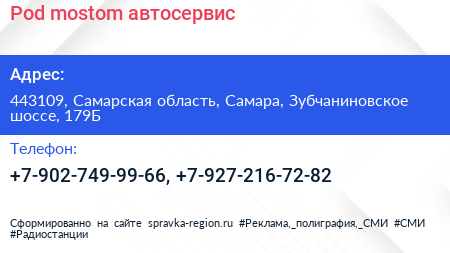 Pod mostom, автосервис по адресу 443109, Самарская область, Самара, Зубчаниновское шоссе, 179Б в дальнейшем Организация, размещена в следующих категориях: