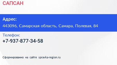 САПСАН по адресу 443096, Самарская область, Самара, Полевая, 84 в дальнейшем Организация, размещена в следующих категориях:
